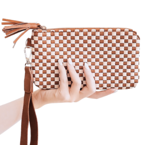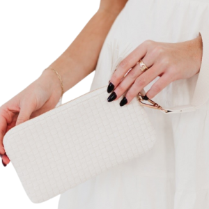 Make a statement with the Emma Woven Clutch Wristlet. Crafted from premium vegan leather, this versatile bag has a wristlet strap inside and an interior card holder for convenience. Available in stylish colors, it’s the perfect accessory for any occasion!